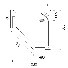 - Waste is positioned 330mm from each side in rear corner