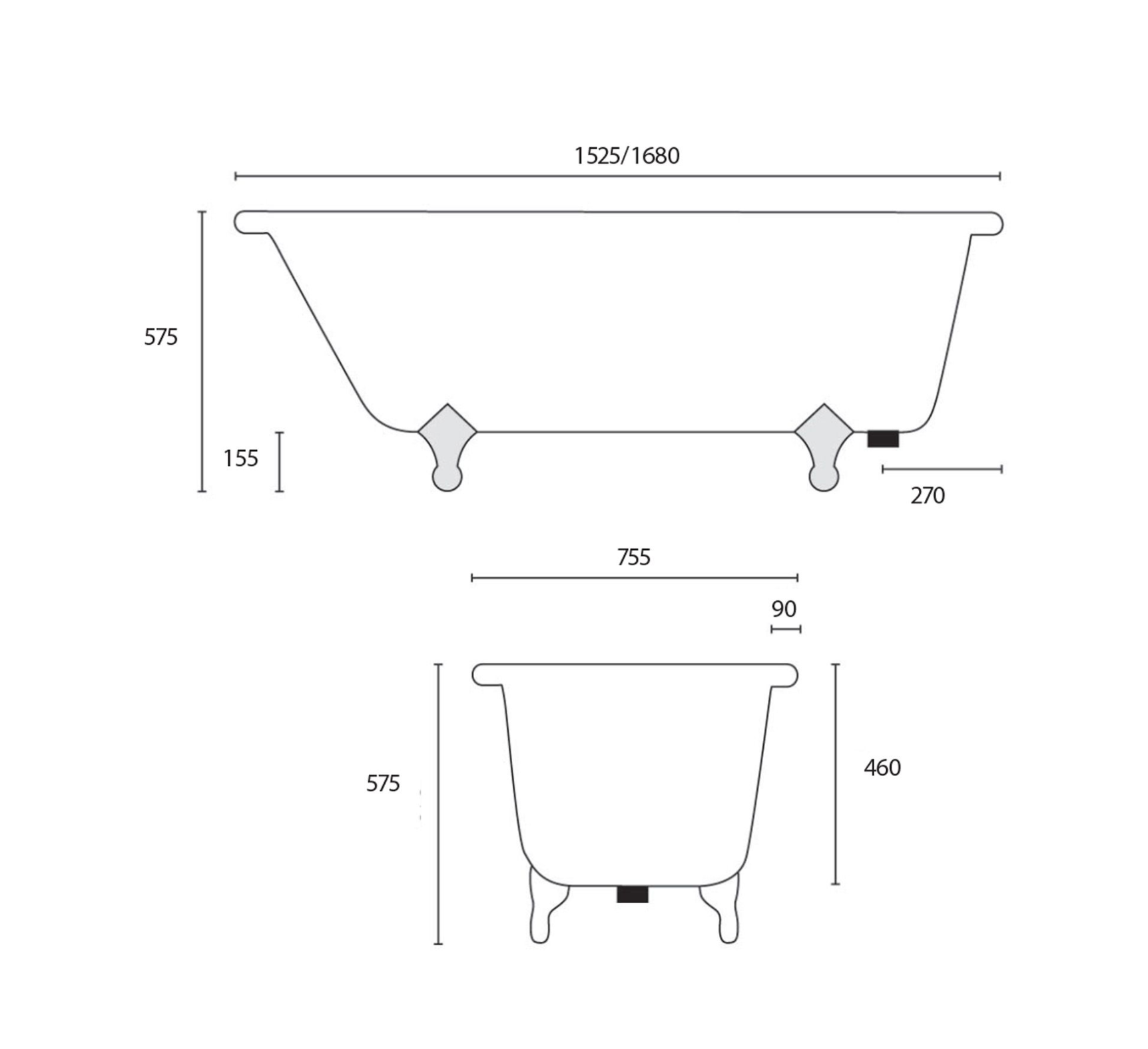 1525mm (l) x 755mm (d) x 575mm (h)